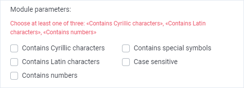 You should mark at least one of the following options: "Contains Cyrillic characters", "Contains Latin characters", "Contains numbers"