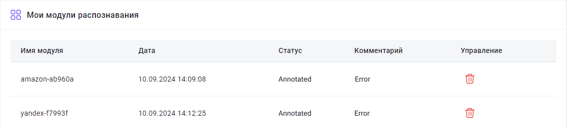 Для модулей с этим статусом доступна возможность удаления - если вы загрузили неправильный архив или задали некорректное имя модуля, вы можете удалить модуль, внести необходимые исправления и отправить его повторно.