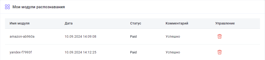 - После успешного пополнения статус первого загруженного модуля изменится на Paid.