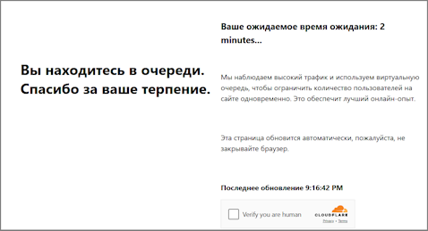 htmlPageBase64<string>requiredHTML-страница в формате base64, на которой присутствует заголовок <title>Waiting Room powered by Cloudflare</title>