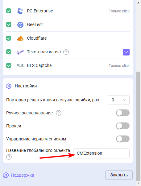 autoClickArray<{[CaptchaType]: Boolean}>Включена ли возможность автоматического начала решения капчи