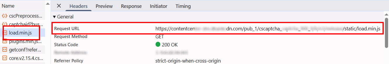 负责加载验证码的 JavaScript 文件路径,通常可在网络请求中找到,文件名类似于 load.min.js