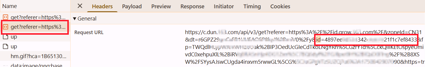 如果您在开发者工具的 Network 标签中发现 challengehcghct 字段,则说明该网站使用的是 Enterprise(或 Business)版本的 Yidun,此时需额外传递 yidunGetLibyidunApiServerSubdomain 参数,以便正确解决。